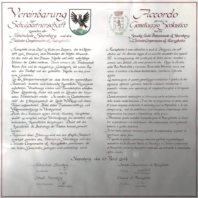 Uns verbindet eine langjährige Partnerschaft und ein Schüleraustauschprogramm mit der Gemeinde Marzabotto in Italien.