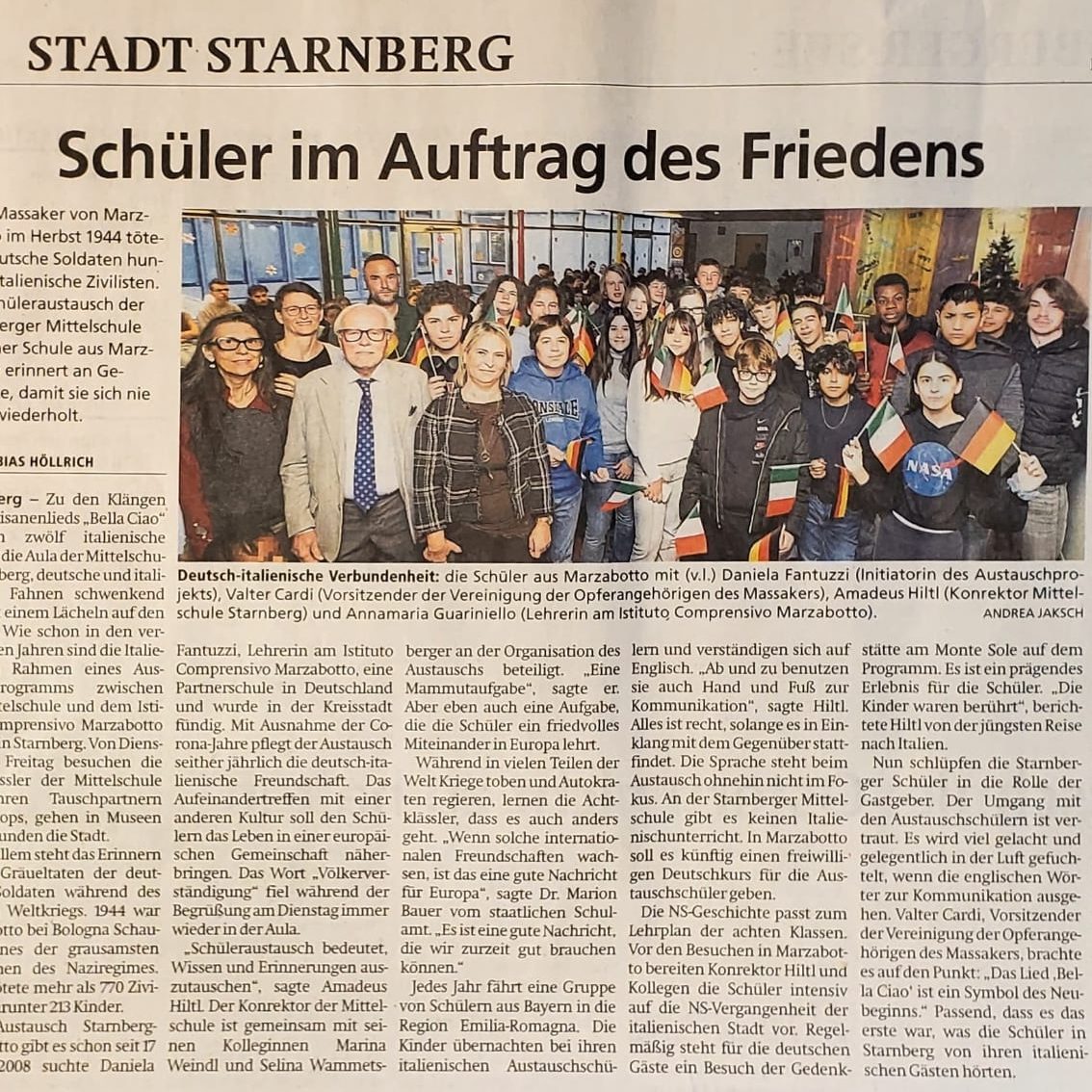 Im Dezember 2025 durfte die Mittelschule Starnberg wieder ganz besonderen Besuch empfangen. Zwölf italienische Schülerinnen und Schüler aus unserer Partnerstadt Marzabotto waren eine Woche lang zu Gast, um unter dem Motto „Schüler im Auftrag des Friedens“ ein starkes Zeichen für die europäische Völkerverständigung zu setzen.